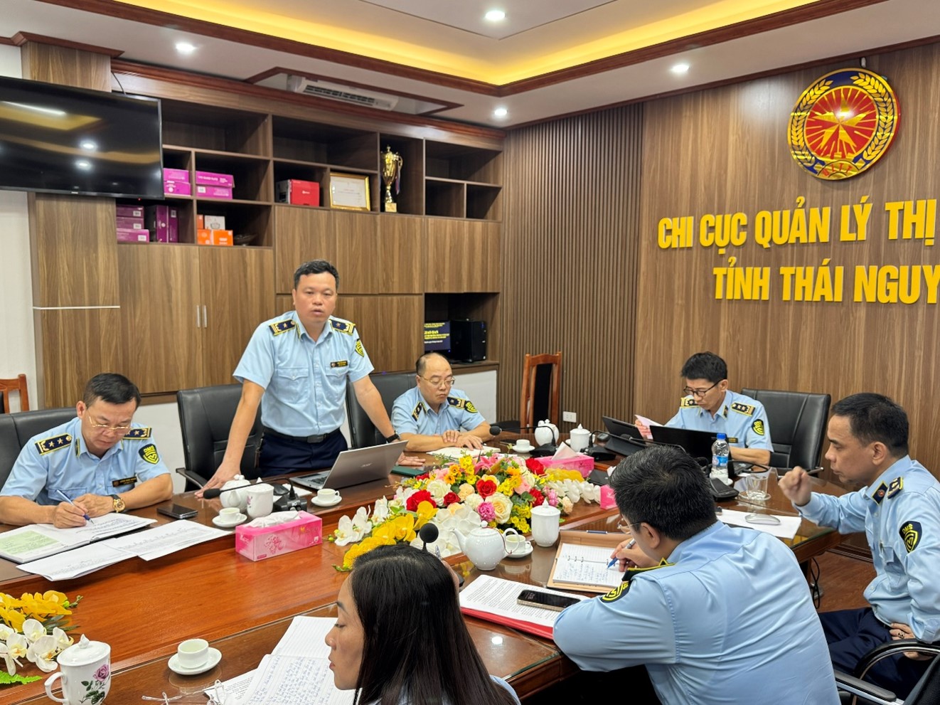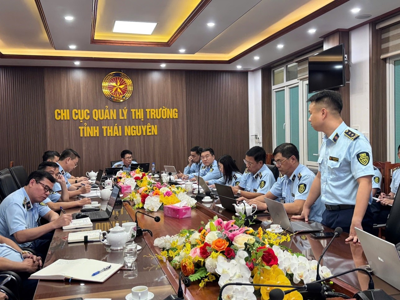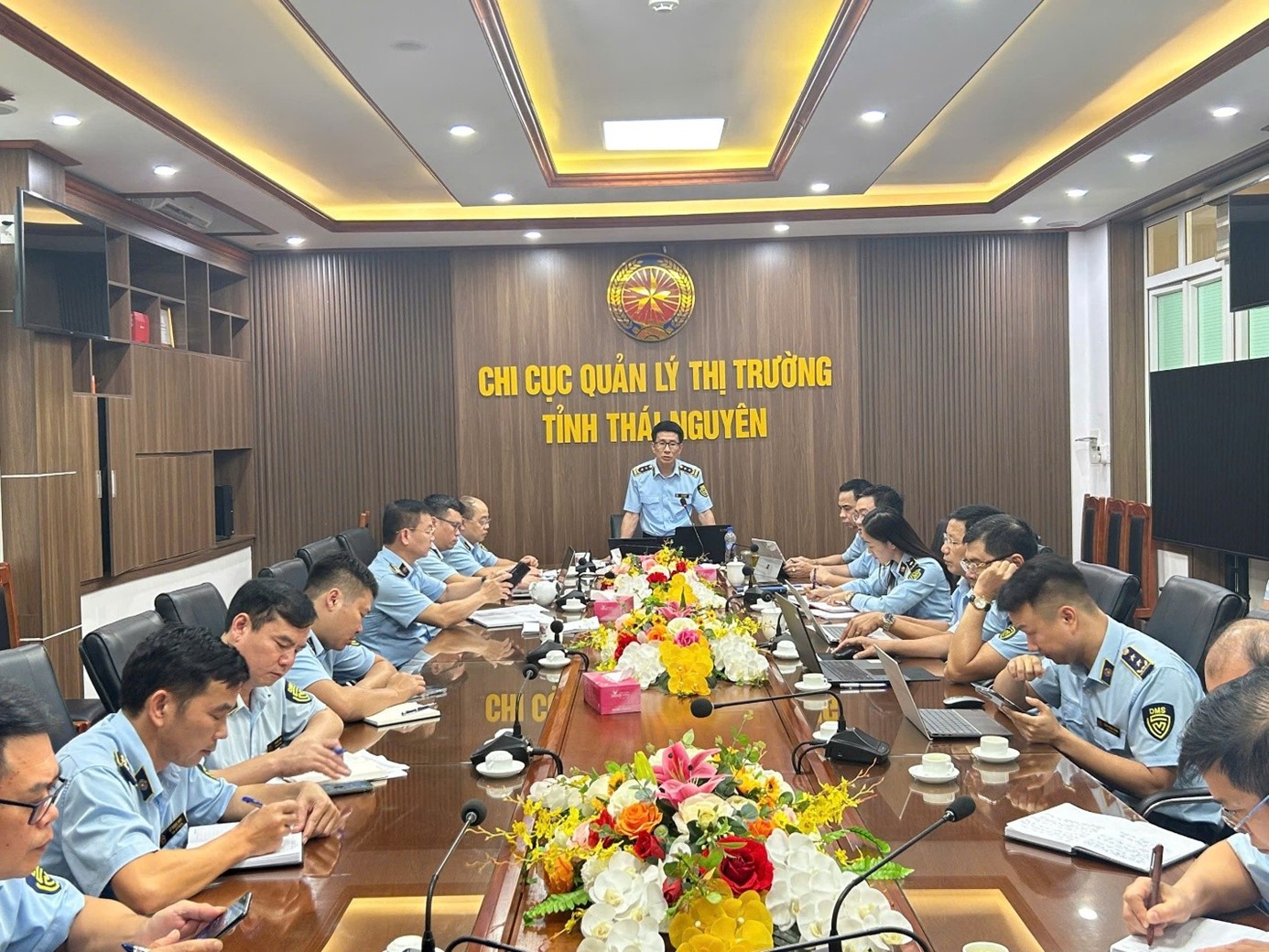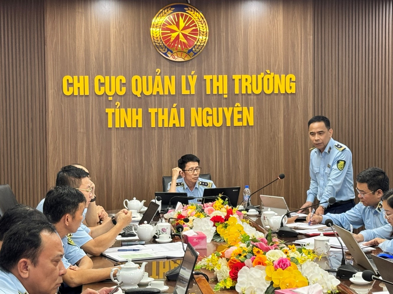 Sáng ngày 29/9/2025, Chi cục Quản lý thị trường (QLTT) tỉnh Thái Nguyên tổ chức Hội nghị giao ban tháng 9 nhằm đánh giá kết quả công tác Quý III và triển khai phương hướng, nhiệm vụ những tháng cuối năm 2025. Đồng chí Tạ Đình Dũng – Chi cục trưởng chủ trì hội nghị; tham dự có các đồng chí Lãnh đạo Chi cục, lãnh đạo các phòng chuyên môn và các Đội QLTT trực thuộc.