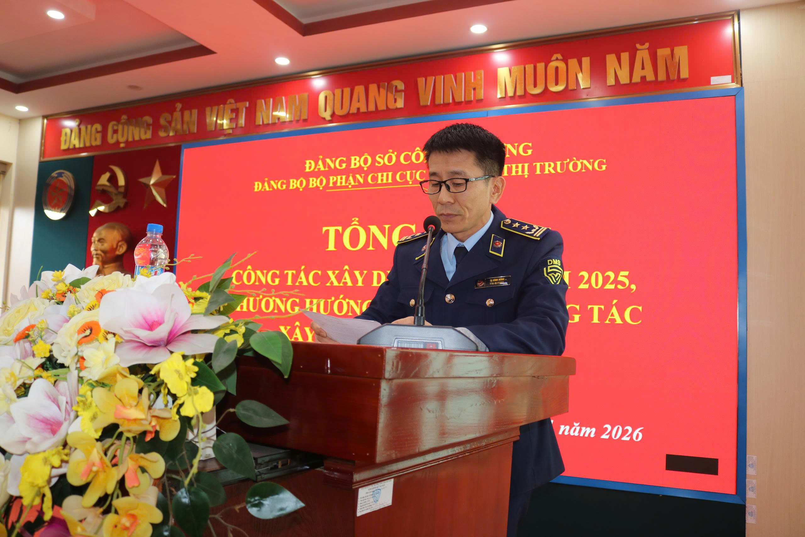 Tại Hội nghị tổng kết công tác Đảng năm 2025 và xây dựng nhiệm vụ năm 2026, Đảng ủy bộ phận Chi cục QLTT đã quán triệt, chỉ đạo các Chi bộ trực thuộc triển khai các hoạt động tuyên truyền hướng tới Đại hội đại biểu toàn quốc lần thứ XIV. Công tác tuyên truyền được Đảng bộ bộ phận xác định là nhiệm vụ trọng tâm, xuyên suốt, tập trung làm rõ ý nghĩa, tầm quan trọng của Đại hội XIV của Đảng - dấu mốc chính trị đặc biệt quan trọng, định hướng chiến lược cho sự phát triển đất nước trong giai đoạn mới, gắn với kỷ niệm 96 năm Ngày thành lập Đảng Cộng sản Việt Nam, làm rõ vai trò lãnh đạo của Đảng trong sự nghiệp xây dựng và bảo vệ Tổ quốc.