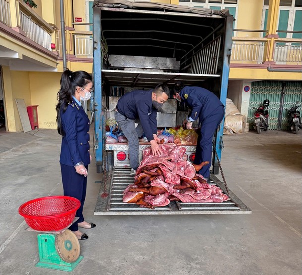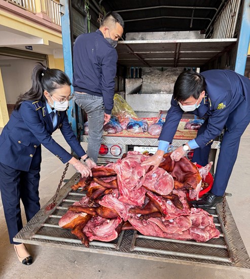Qua kiểm tra, lực lượng chức năng xác định lái xe kiêm chủ hàng là ông N.V.C, thường trú tại xã Vạn Phú, tỉnh Thái Nguyên chở trong thùng xe ô tô chứa thịt lợn dạng thân mảnh đã giết mổ, với tổng trọng lượng 185 kg. Toàn bộ số thịt không có bao bì, nhãn mác, không có dấu kiểm soát giết mổ của cơ quan có thẩm quyền, không kèm theo hóa đơn, chứng từ hay giấy tờ hợp pháp để chứng minh nguồn gốc, xuất xứ hàng hoá.