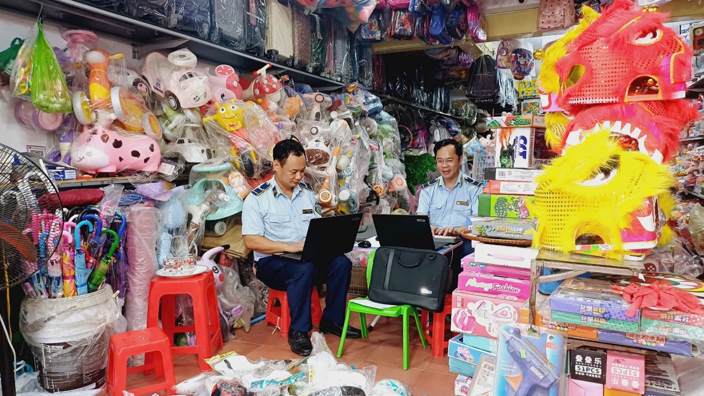 Lực lượng QLTT kiểm tra sản phẩm bánh Trung thu, đồ chơi trẻ em tại cơ sở kinh doanh