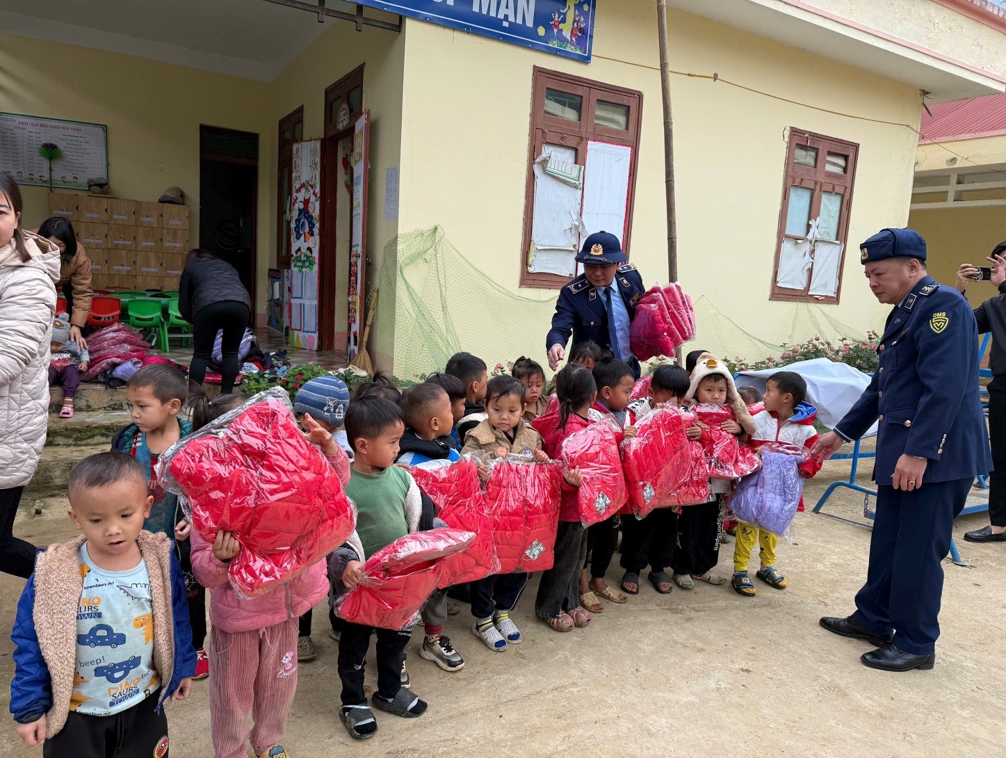 Đội QLTT số 8 tổ chức chương trình thiện nguyện, trao tặng quà cho học sinh mầm non tại các điểm trường trên địa bàn xã Bằng Thành, tỉnh Thái Nguyên.
