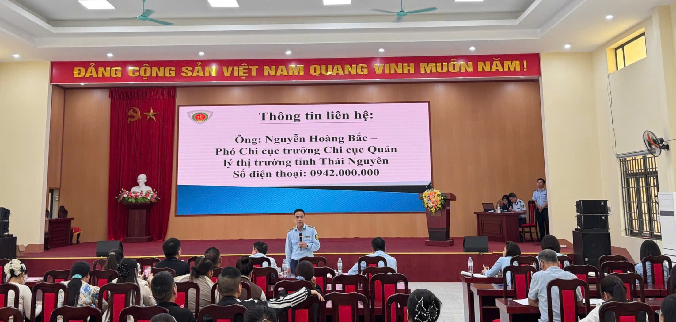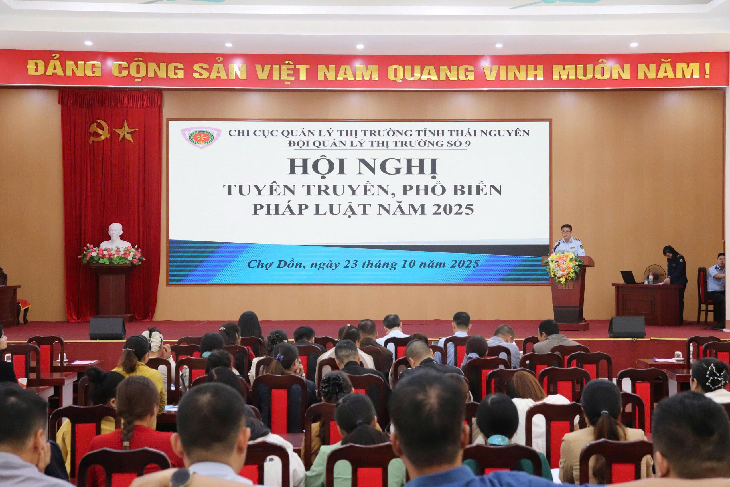 Thực hiện Kế hoạch số 38/KH-QLTT ngày 06/10/2025 của Đội Quản lý thị trường số 9 về công tác tuyên truyền, phổ biến giáo dục pháp luật năm 2025, ngày 23/10/2025, Đội Quản lý thị trường số 9 - Chi cục QLTT tỉnh Thái Nguyên đã tổ chức Hội nghị tuyên truyền, phổ biến pháp luật cho các cơ sở sản xuất, kinh doanh trên địa bàn xã Chợ Đồn, tỉnh Thái Nguyên. Hội nghị đã thu hút hơn 200 người tham gia.