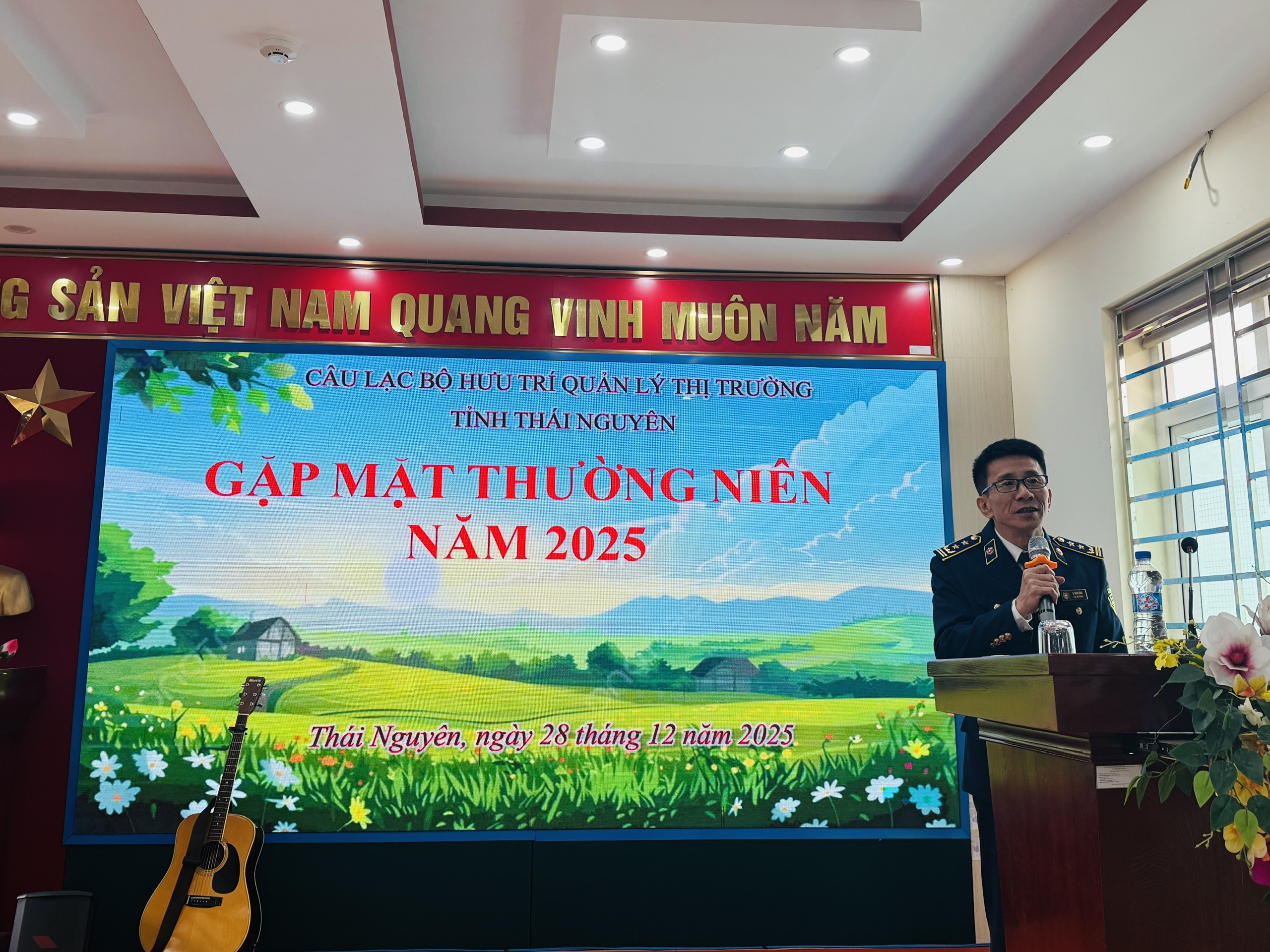 Sáng ngày 28/12/2025, Câu lạc bộ Hưu trí Quản lý thị trường (QLTT) tỉnh Thái Nguyên đã long trọng tổ chức buổi gặp mặt ra mắt hoạt động của Câu lạc bộ. Tham dự buổi gặp mặt có đồng chí Tạ Đình Dũng - Chi cục trưởng Chi cục QLTT tỉnh Thái Nguyên, cùng các đồng chí Phó Chi cục trưởng, lãnh đạo các phòng chuyên môn và các Đội QLTT trực thuộc; Ban liên lạc Câu lạc bộ Hưu trí cùng đông đảo hội viên là cán bộ hưu trí của lực lượng QLTT hai tỉnh Thái Nguyên và Bắc Kạn (trước sáp nhập).