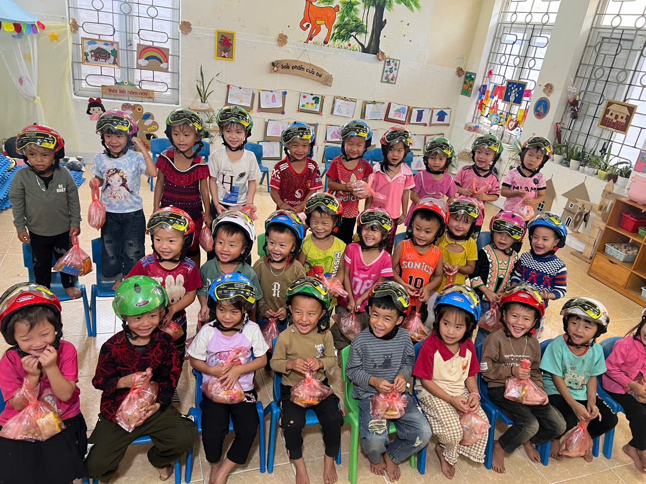 Tại chương trình, Đoàn đã trao 36 chiếc mũ bảo hiểm, 07 thùng bánh kẹo và 09 thùng nhu yêu phẩm như nước mắm, bột canh, mỳ chính…cho các các em học sinh  có hoàn cảnh khó khăn của Trường Mầm non Phúc Than và điểm trường bản Khì.
