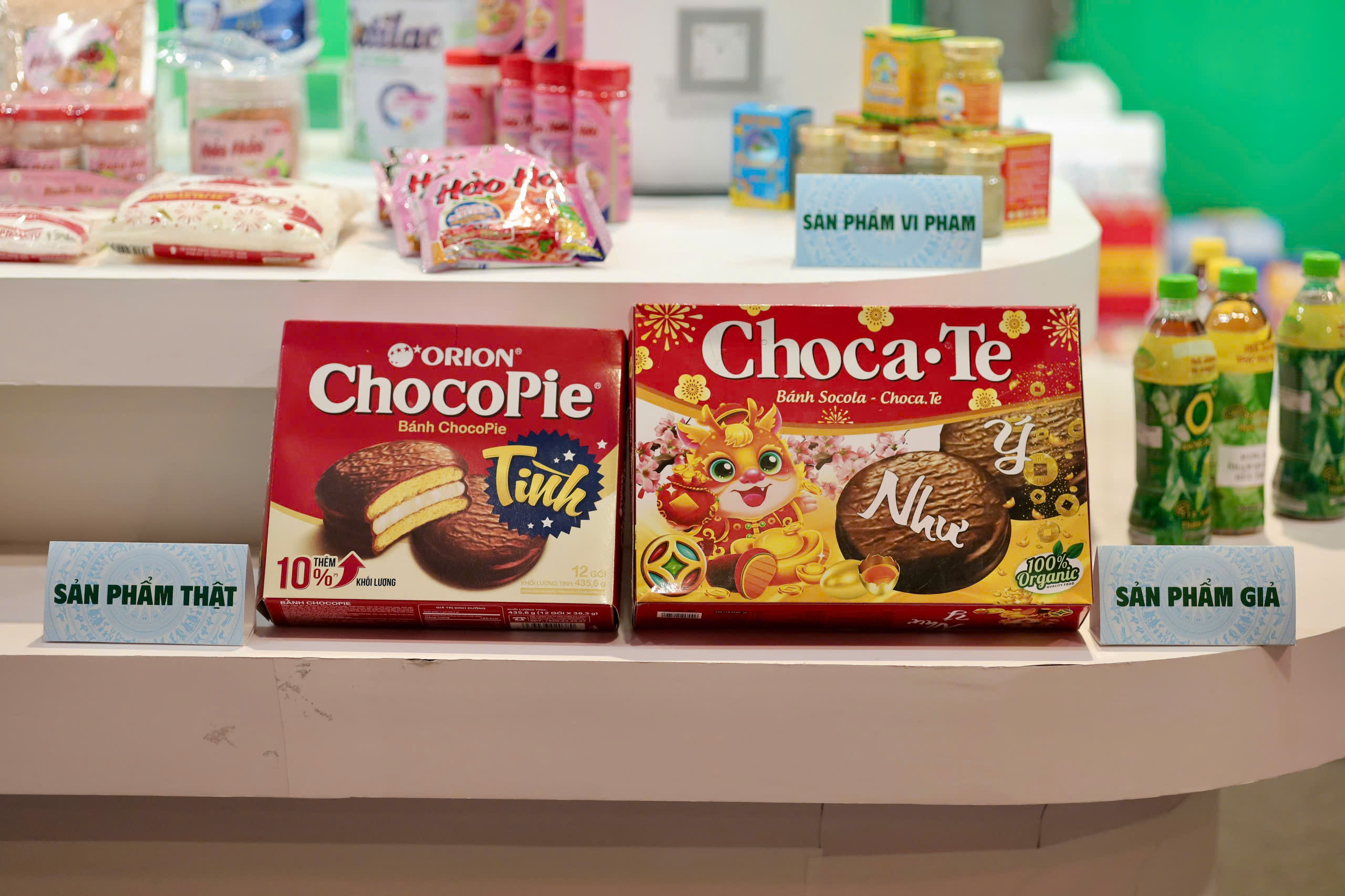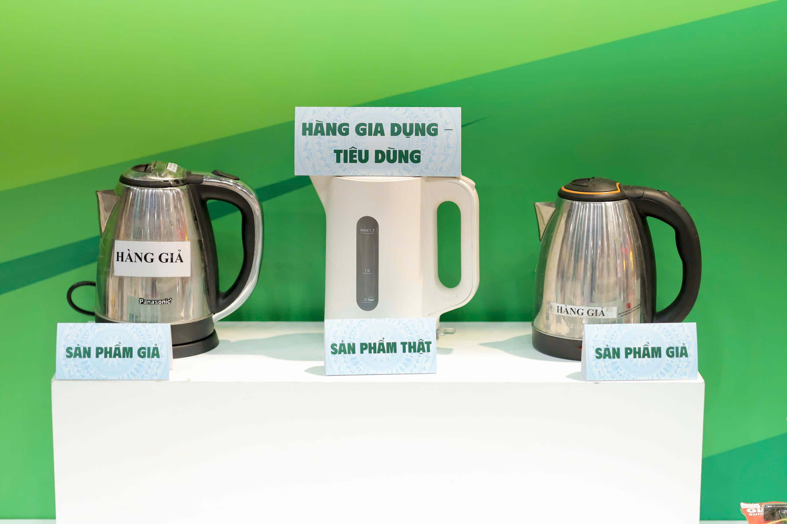 Không gian được thiết kế trực quan, sinh động, trưng bày các mẫu sản phẩm thật và giả song song để người dân dễ dàng so sánh, quan sát. Cán bộ của Cục trực tiếp giới thiệu tem chống giả, mã QR truy xuất nguồn gốc, các đặc điểm nhận diện sản phẩm chính hãng, đồng thời tuyên truyền về tác hại của hàng giả, hàng kém chất lượng đối với sức khỏe, kinh tế và uy tín thương hiệu Việt.